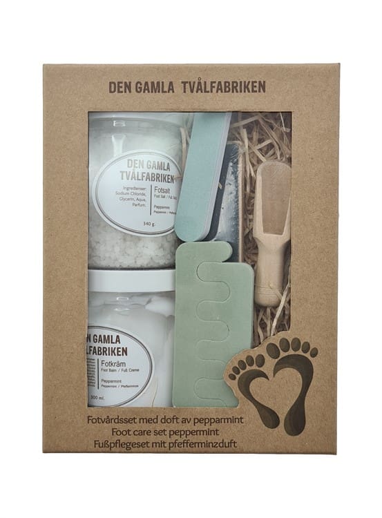 Fotvårdset med doft av pepparmint från Den gamla tvålfabriken i en fin presentask.