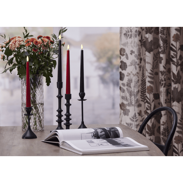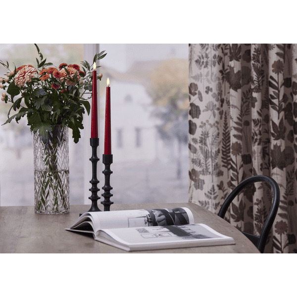 2- pack antikljus på batteri. Med inbyggd timer lyser den i sex timmar. Drivs av 2x AA batteri. har en fin slät yta och ger ett fint naturtroget sken. Höjd: 26 cm